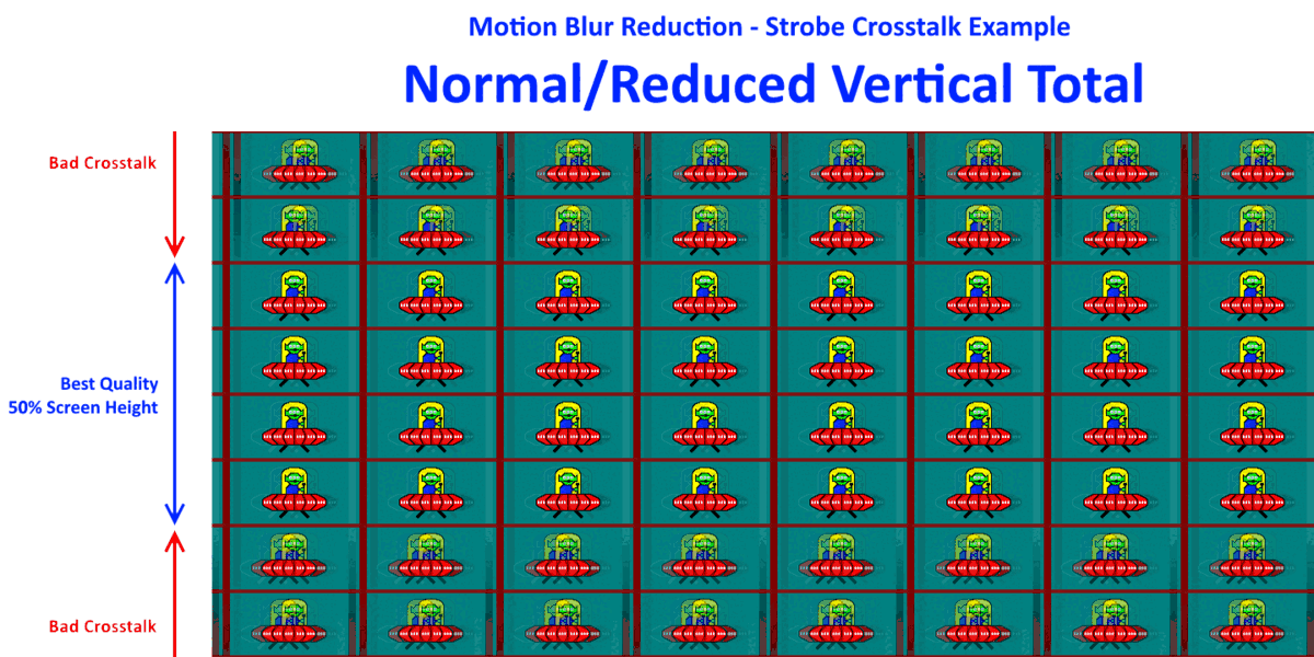 Reduce strobe crosstalk in cold rooms, hot rooms & compensate for factory variances. Real world rooms are not same temperature as laboratories! LCD GtG is slower in cold rooms. We let you adjust. - Better than factory tuning & Large Vertical Totals