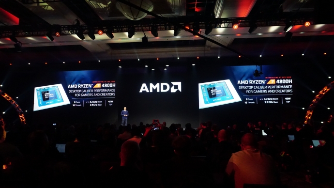 “The Ryzen 7 4800U features eight Zen 2 cores, 16 threads, up to 4.2GHz boost, 1.8GHz base, eight Radeon cores and 15W TDP. Graphics will be 28% better than Intel’s Core i7 and 90% better on multi-thread performance and 4% higher on single-thread performance.”