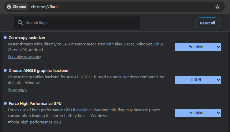 NOTE: Once the browser frame rate problems with ANGLE D3D11 is fixed, we will inform users to switch the setting back.