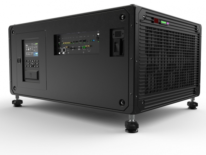 The projector uses three 1.38-inch DLP imagers and a video-processing pipeline of up to 1.2 Gigapixels per second. It comes standard with four 12G-SDI1 connectors, two HDMI 2.0 ports, two DisplayPort 1.2, and HDBaseT connectivity.