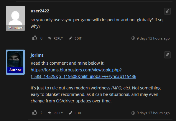I would like to know how to set VSYNC correctly, I read in some forums that you do not directly recommend setting VSYNC from the nvidia control panel in a generic way. So how should it be set up? Thank you so much for what you do.