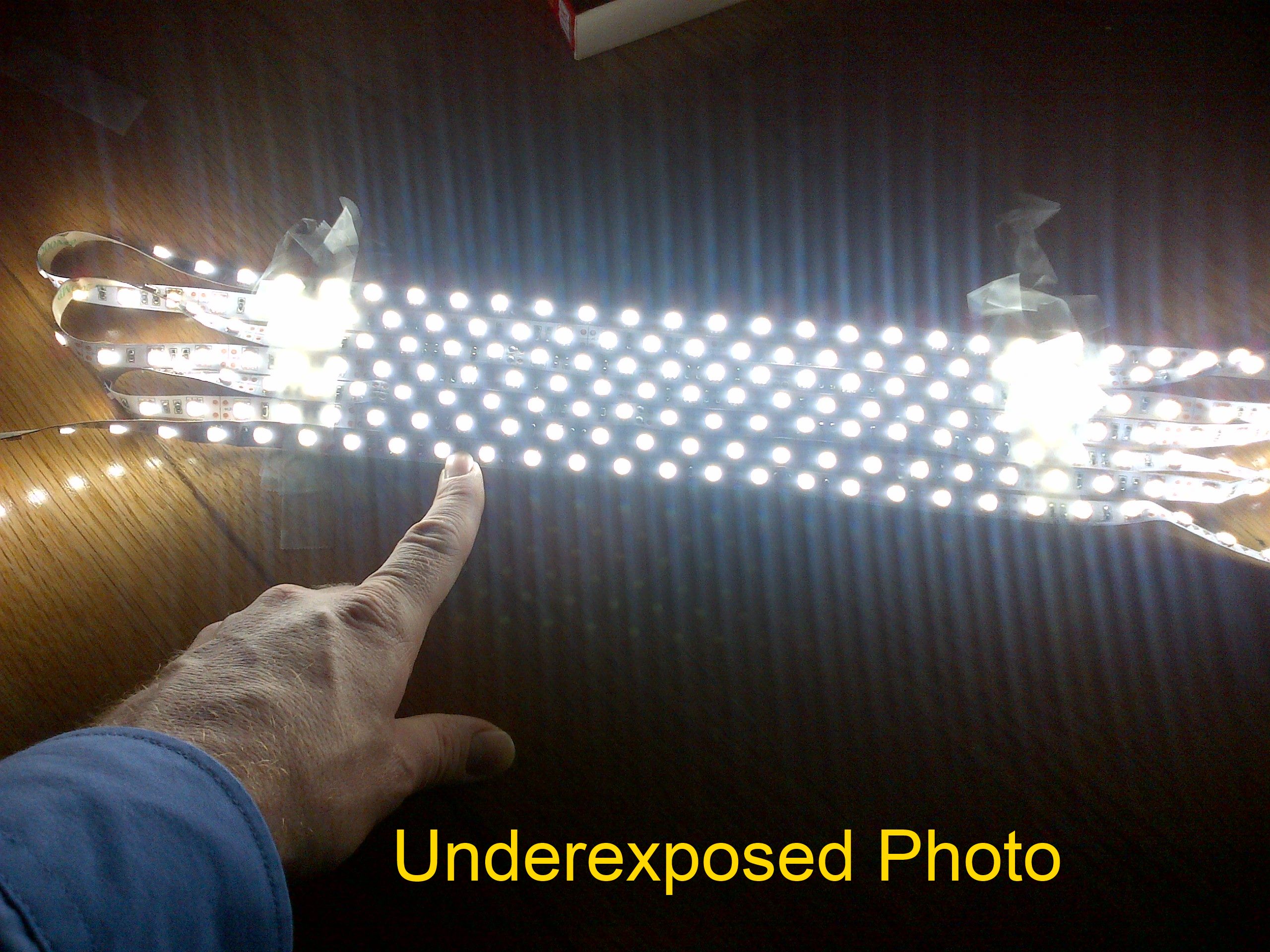 One set of LED ribbons have now arrived. They are BRIGHT! Color purity is good; they are definitely backlight-quality and extremely unfiorm. I will be using 900 LED’s (22 lumens each) as a backlight in a single 24″ computer monitor — 150 watts per square foot — on a modified 120Hz 3D-compatible LCD monitor, utilizing 0.5ms to 1.0ms impulses to eliminate at least 95% motion blur in an LCD.