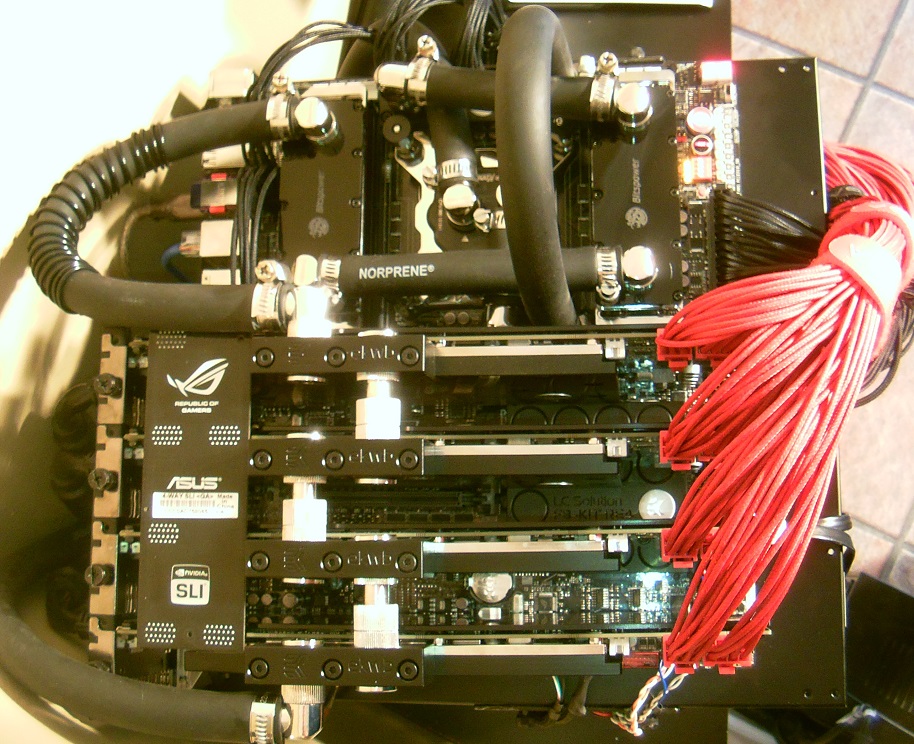 The world’s most powerful single-GPU graphics cards, nVidia GeForce Titan, cost over $1000 each. But what happens if you buy FOUR Titans, and overclock all of them with water-cooling on triple-LightBoost setup? Crysis 3 running at 120fps @ 120Hz on three ASUS VG248QE LightBoost monitors in surround mode!