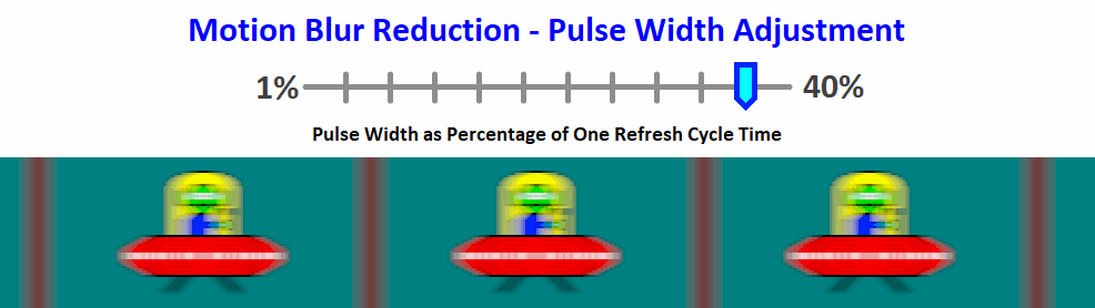 How long the backlight is flashed during one refresh cycle will determine the initial MPRT (Motion Picture Response Time or persistence). The shorter the pulse, the larger the motion resolution and you can eye-track faster motion more clearly.