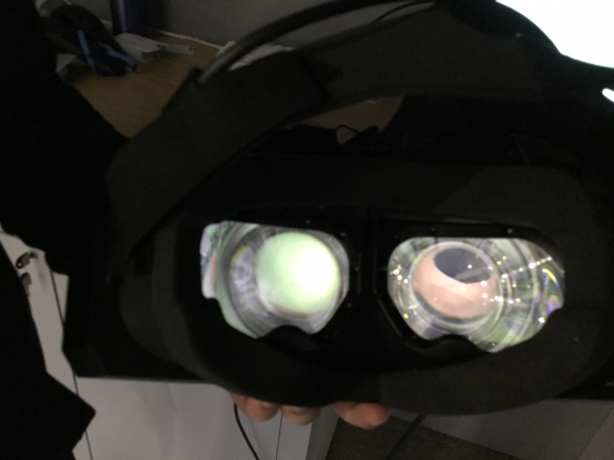 Quick impressions:Â Impressively nearly no screendoor effect, huge field of view, its low-persistence LCD had lack of motion blur, albiet poorer contrast with greyer blacks (expected of most LCD-based technologies).