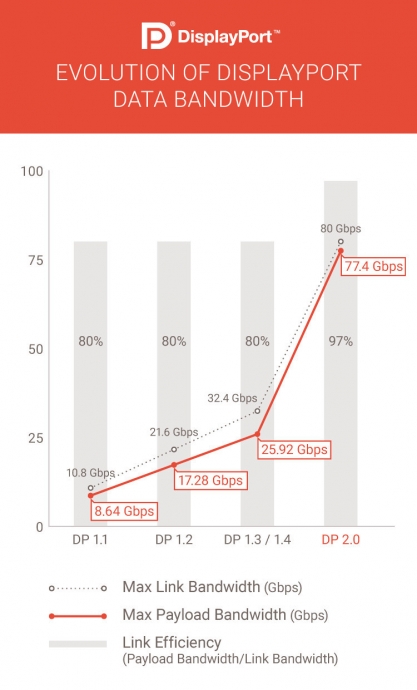 This is a giant leap of being 3x faster than the previous DisplayPort 1.4 standard, allowing 77.37 gigabits per second of data over a single cable, while being backwards compatible.