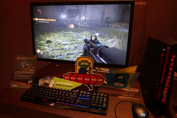 I visited Wynn Encore at CES 2018 where ASUS was holding their showroom for their monitors. We’ve already written earlier about the Big Format G-SYNC Display (BFGD), a 65″ 4K 120Hz G-SYNC display.